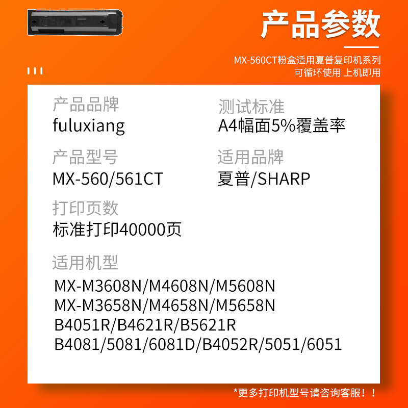 M3658 M4608 M4658 适用夏普MX M5658N低温碳粉B4621R M3608N 561CT复印机墨盒M5608 5621添加粉 560CT粉盒MX