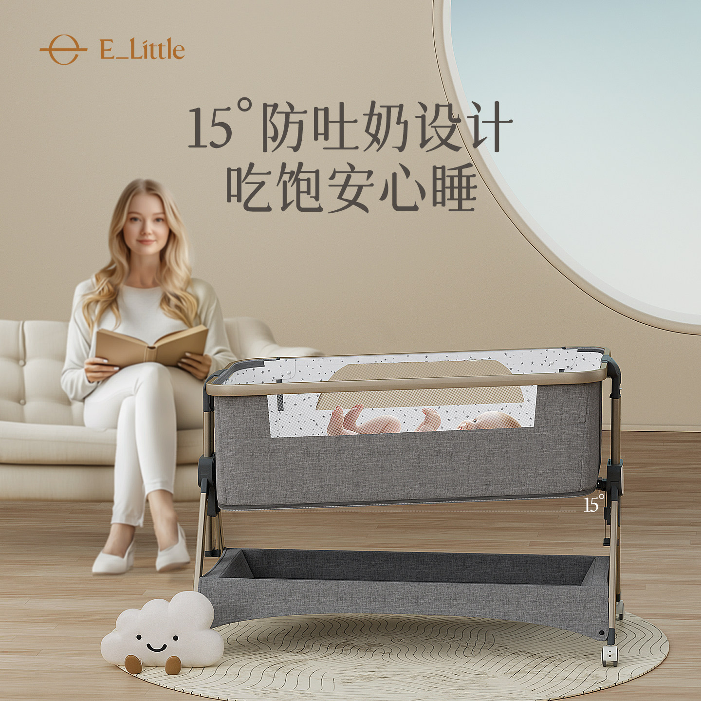 逸乐途小安适婴儿床可折叠可升降多功能宝宝便携移动新生儿拼接床