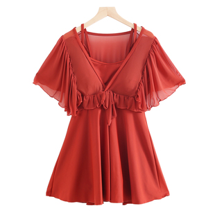 绝美微胖遮肉连体平角小个子泳装 泳衣女泡温泉高级感2025新款 女款