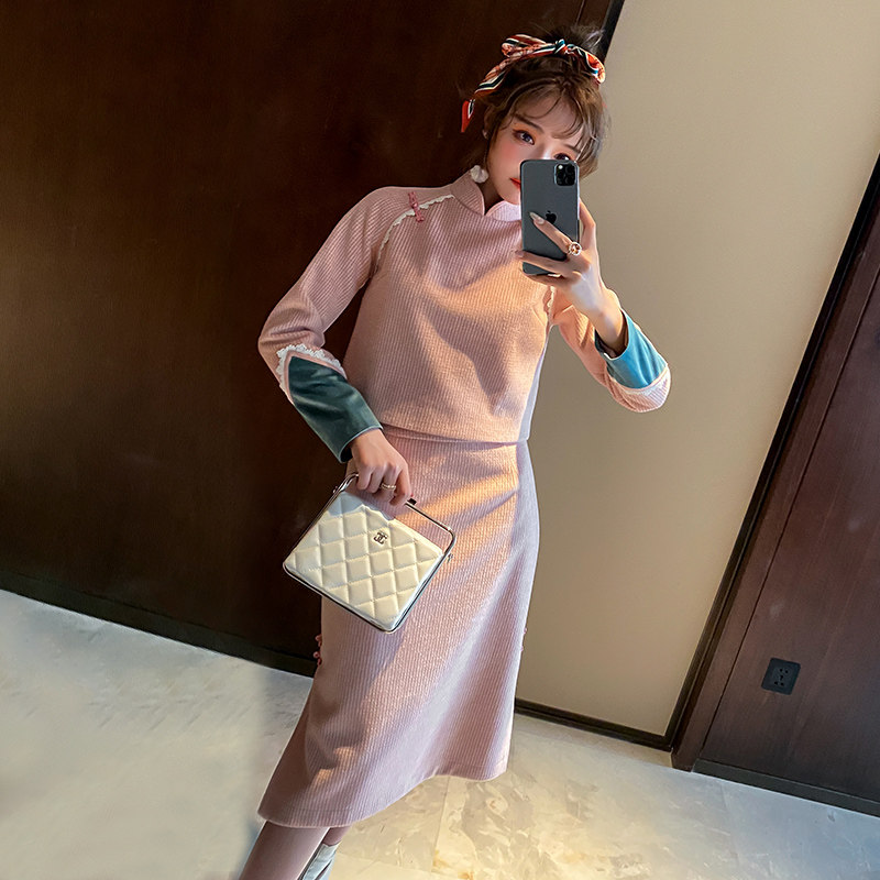 小香风千鸟格套装 中国风小个子显高洋气套裙两件套 裙女毛呢春秋装