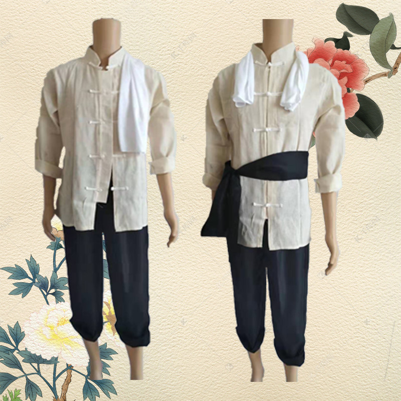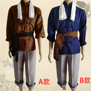 农村平民百姓阿宝演出服农民服装 小二服老土布衣 民国马褂男囚古装