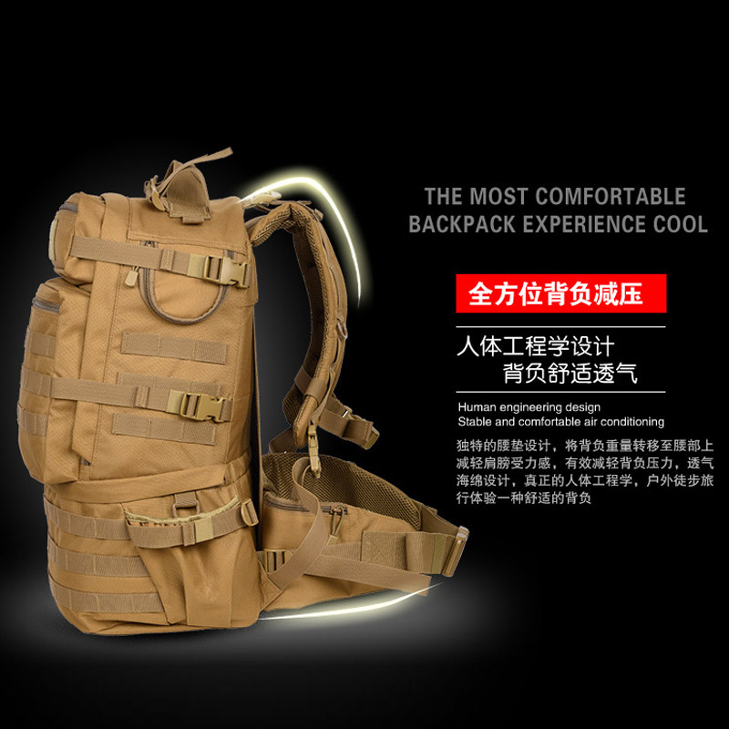 龙野户外登山包多功能双肩背包男女防水驴友徒步旅行包50L大容量