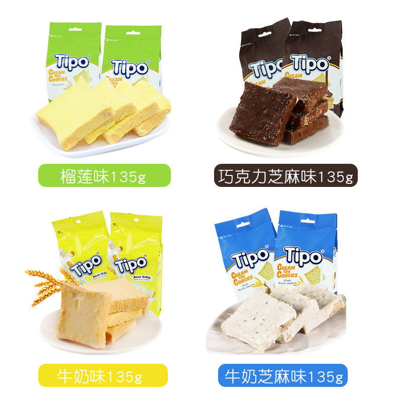 越南进口友谊牌tipo面包干白巧克力饼干135g零食代餐早餐点心食品