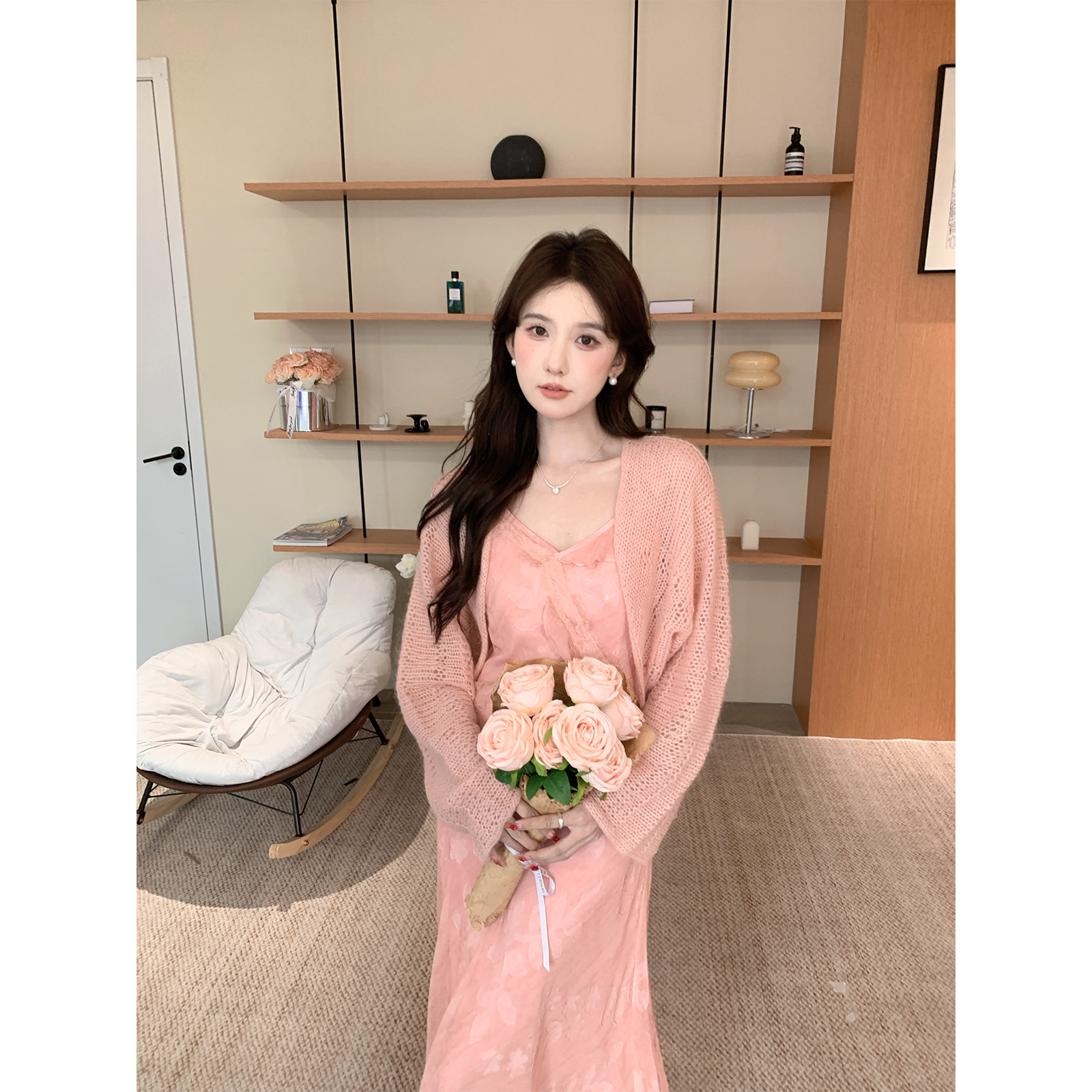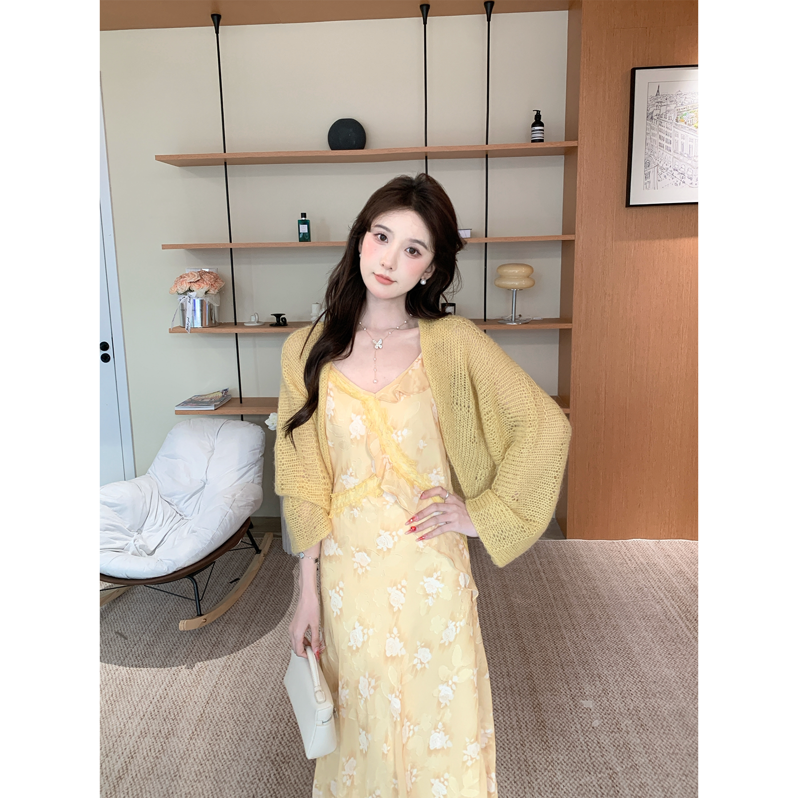 气质慵懒针织开衫 法式 印花长裙S726X02635 春信 SHAOER