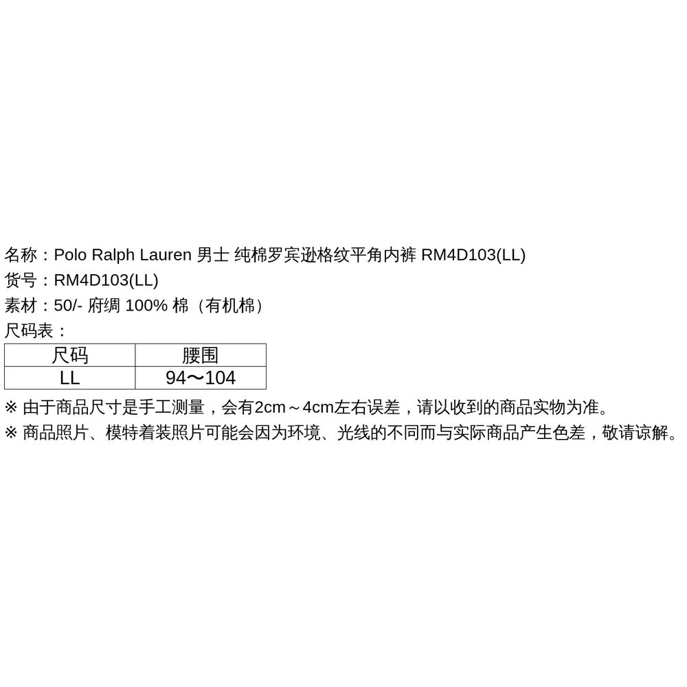 纯棉罗宾逊格纹平角内裤 日本直邮Polo 男士 Lauren RM4D10 Ralph