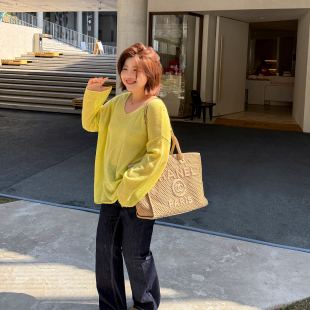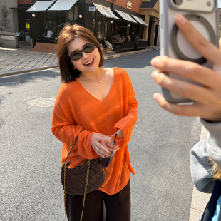 春夏200斤两穿宽松休闲毛衫 女装 木子理想大码 胖mm明媚简约针织衫