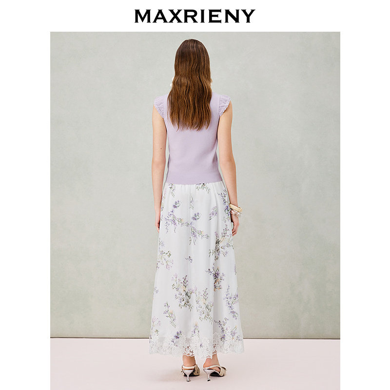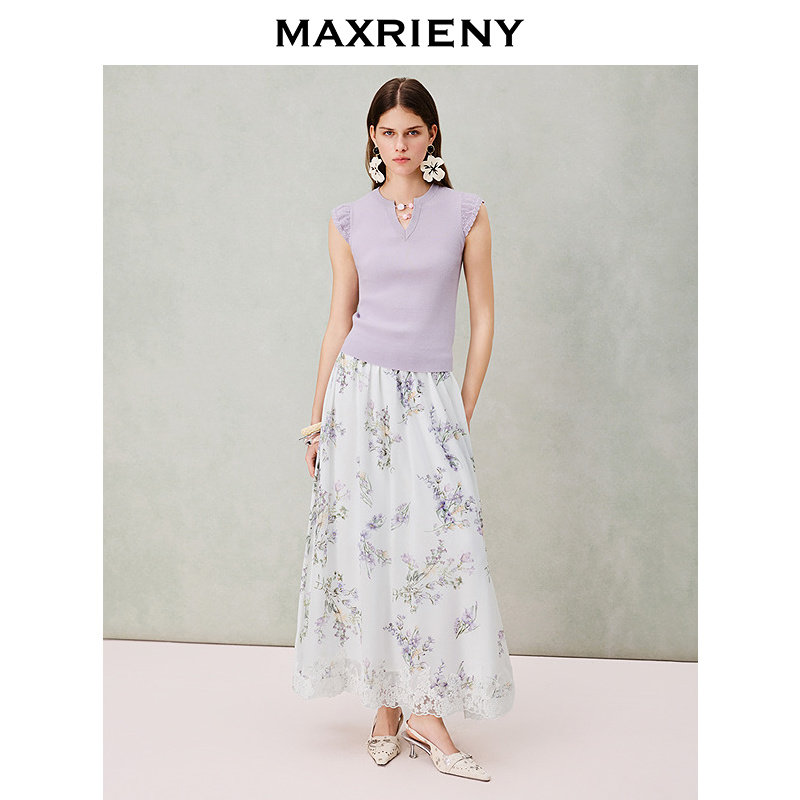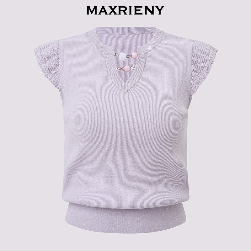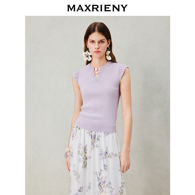 短款 MAXRIENY紫色针织衫 套头小飞袖 新款 毛衣荷叶边上衣 2026年夏季