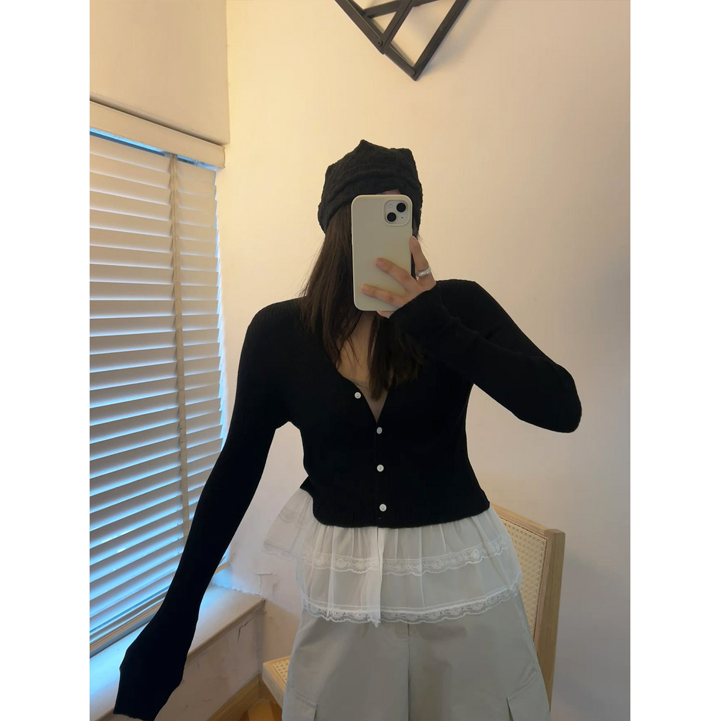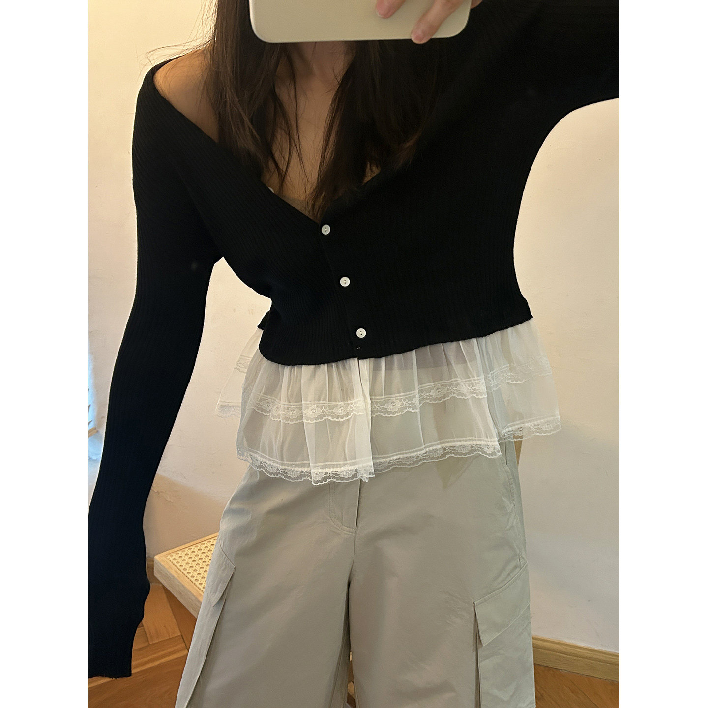 薄外套 小公主上衣小裙摆蕾丝边针织开衫 鬼鬼家正品 韩代东大门