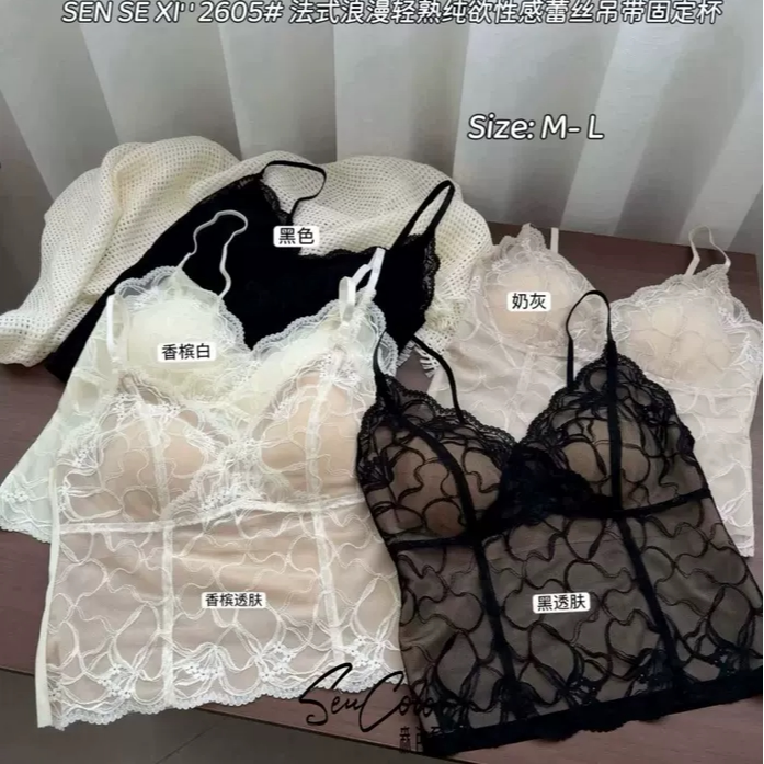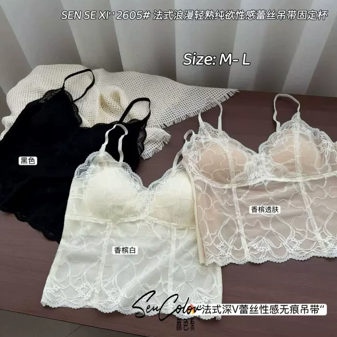 森色系2605法式 抹胸 蕾丝美背吊带内衣女固定杯聚拢文胸一体式