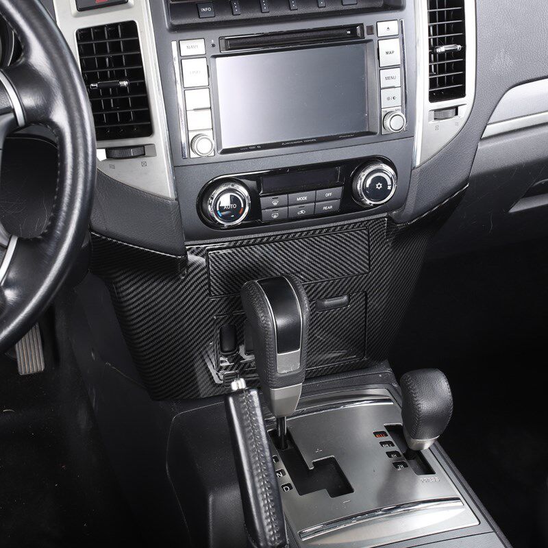 三菱帕杰罗改装 饰配件 内饰V87V93V97中控台点烟器面板贴碳纤纹装