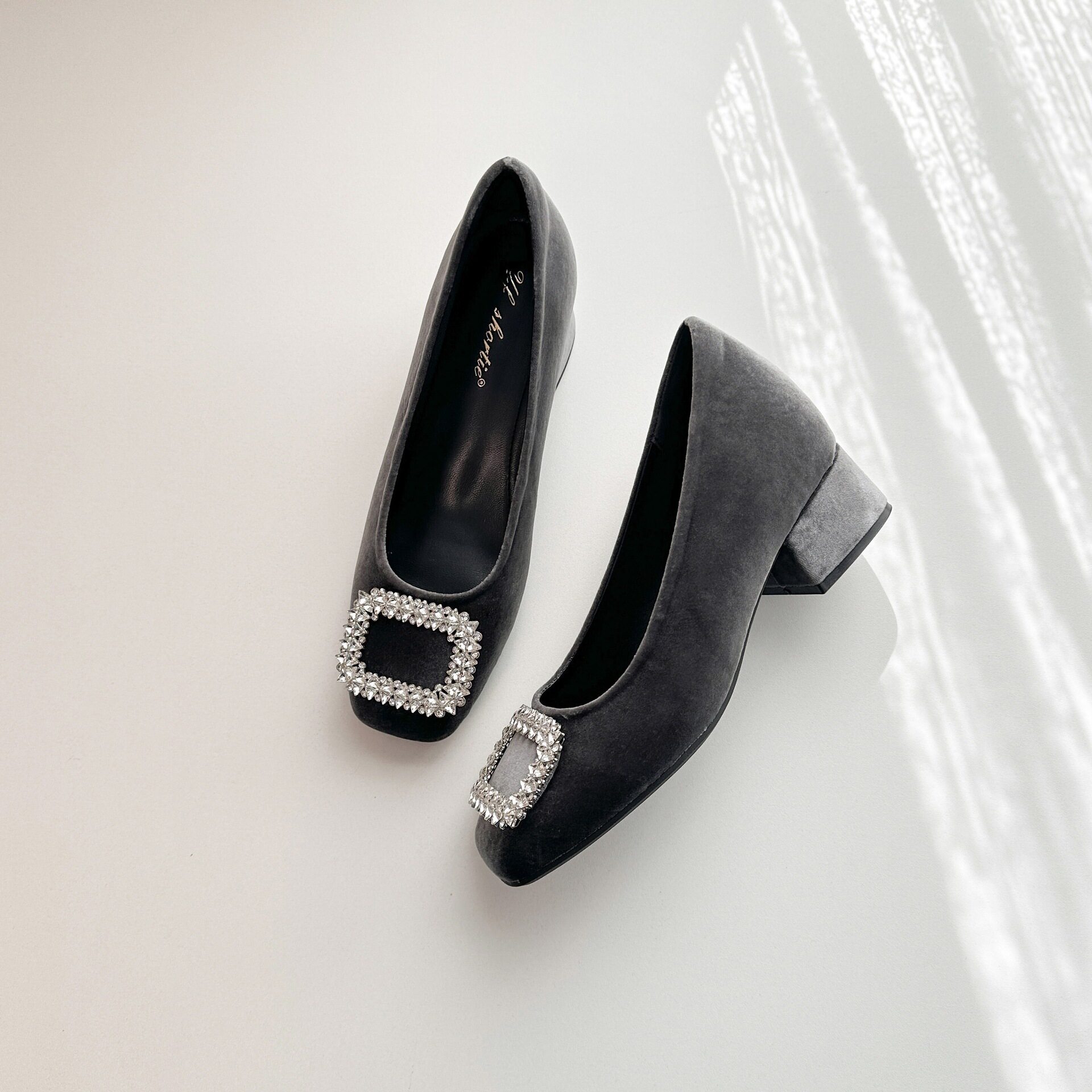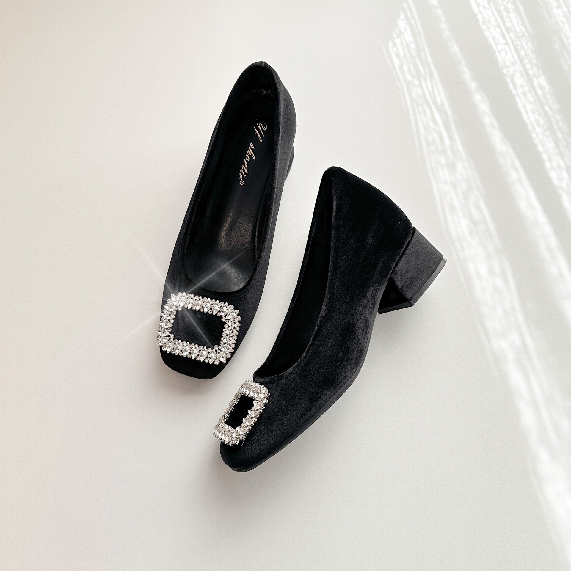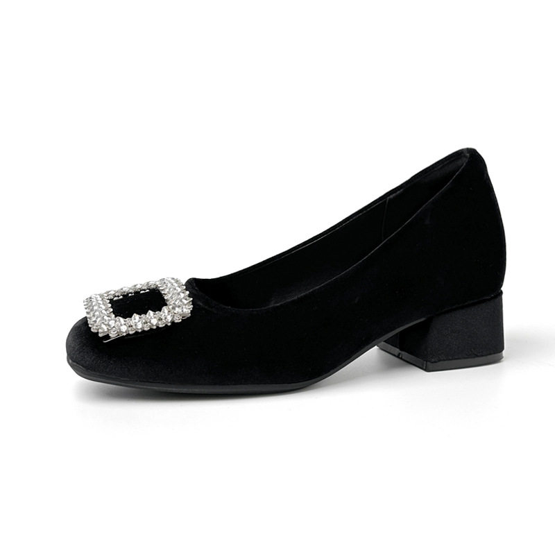 水钻方头不累脚粗跟浅口一脚蹬玛丽珍鞋 女内增高2026新款 单鞋 法式
