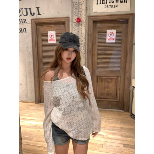可爱春夏套装 你 韩系微胖mm休闲日常透气针织罩衫 椰冻织依 鱼
