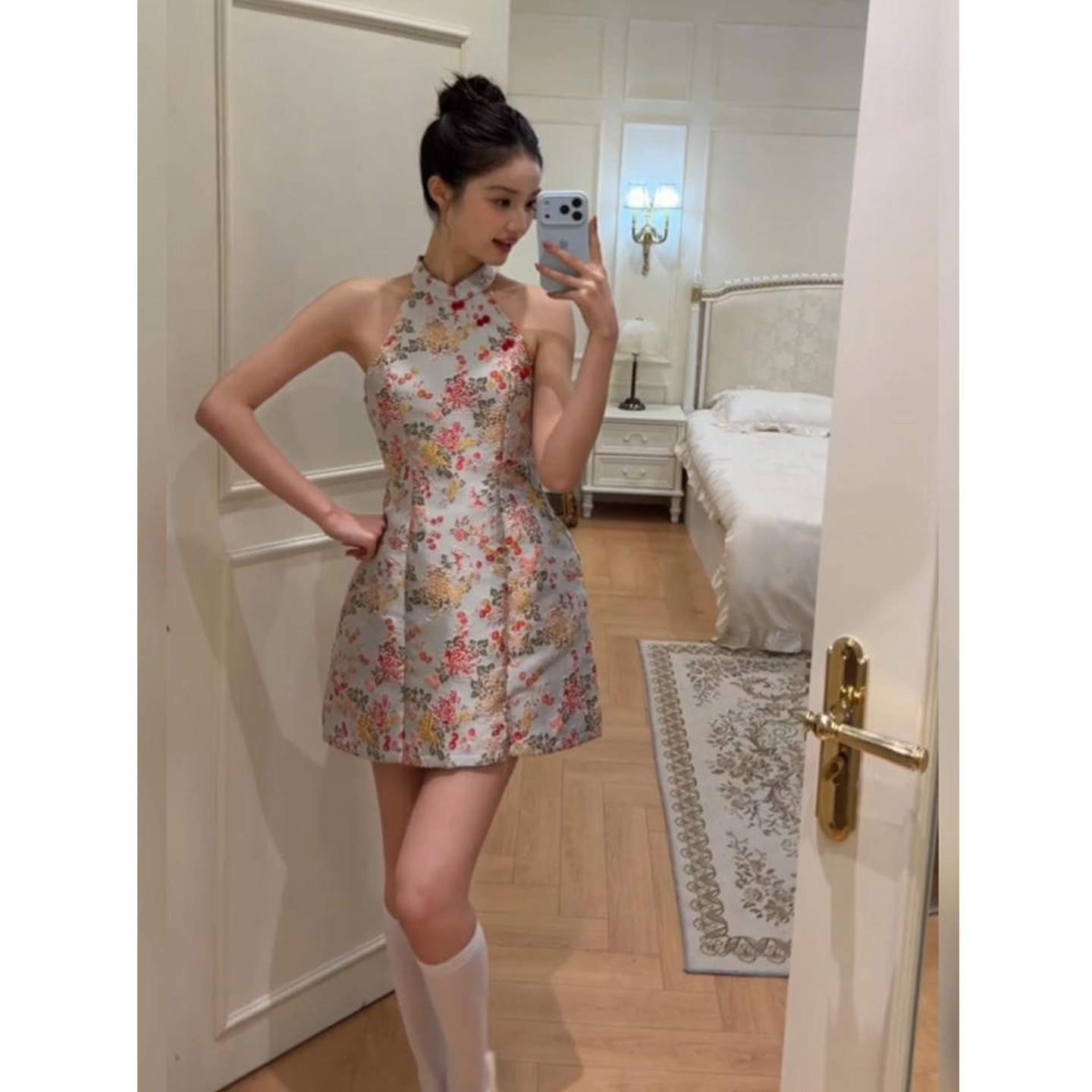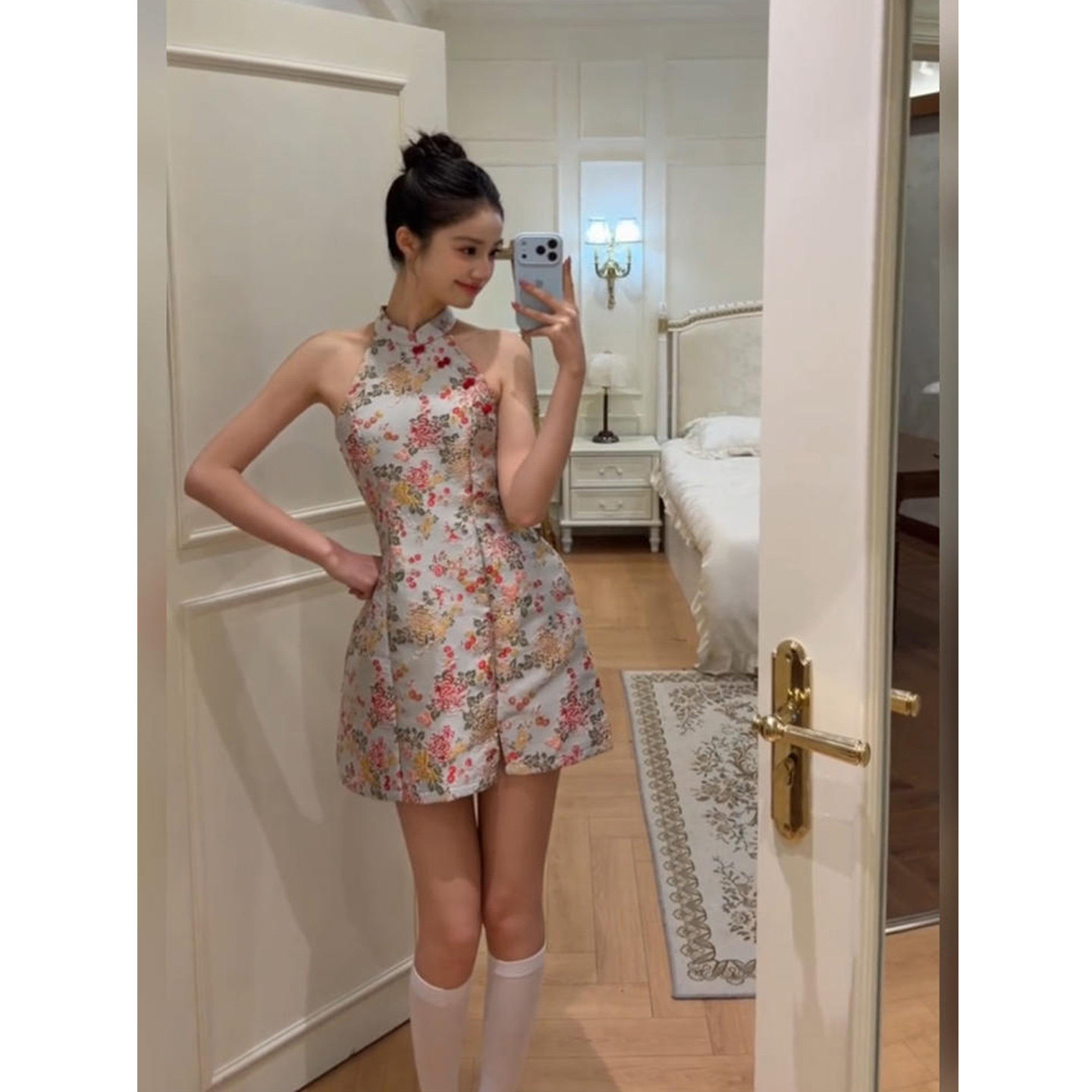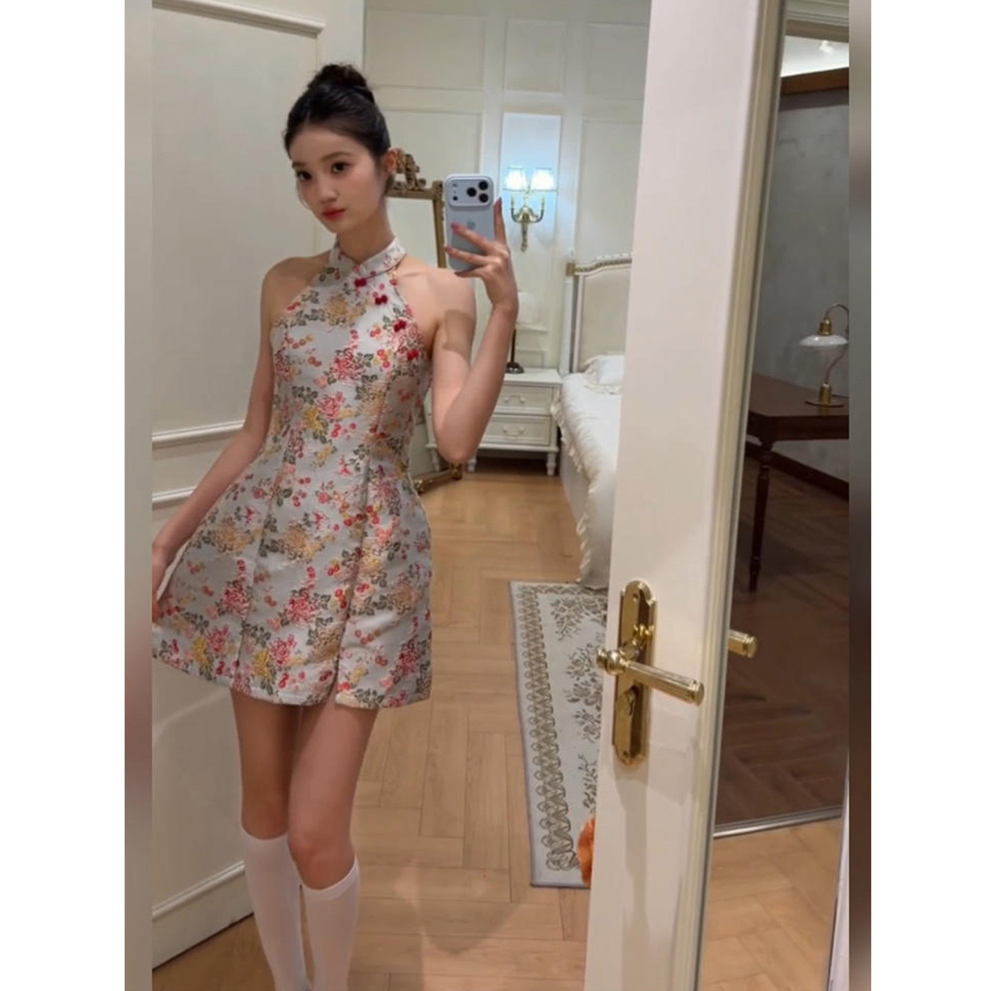 高级感无袖 立领印花旗袍连衣裙女26年夏季 短裙 微胖复古新中式 XZY