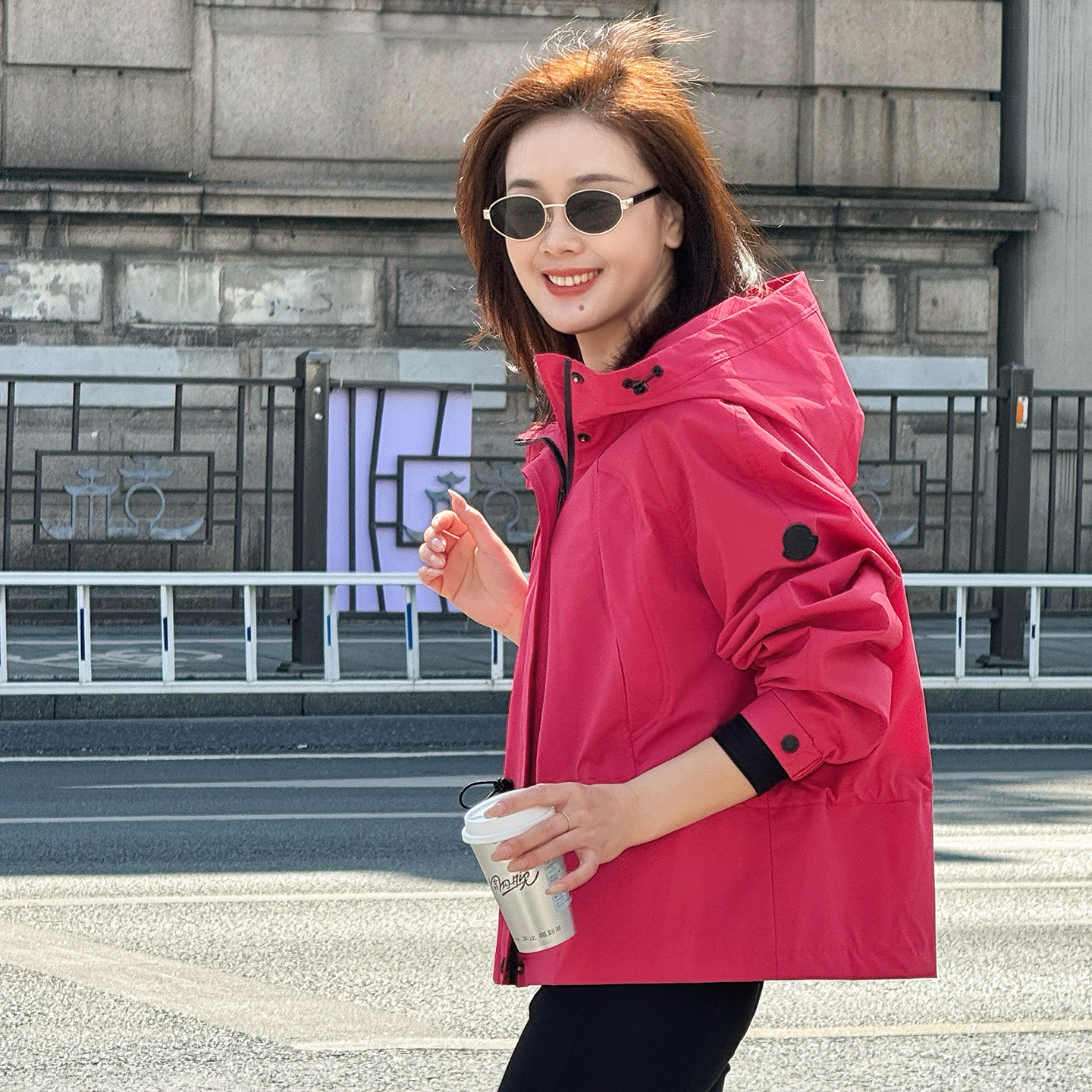 连帽外套减龄WT2602 设计感收腰短款 26805 火龙果 T井姐妹
