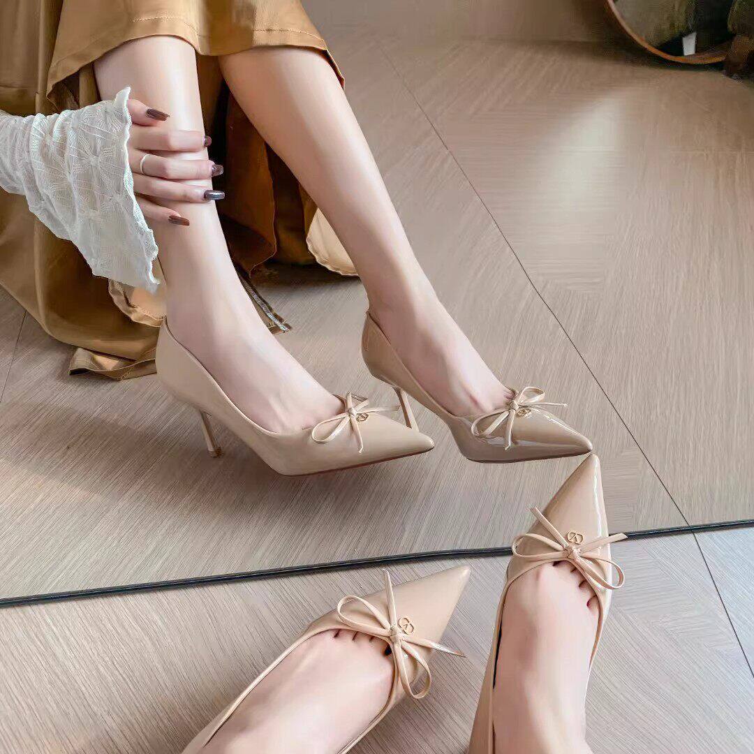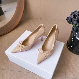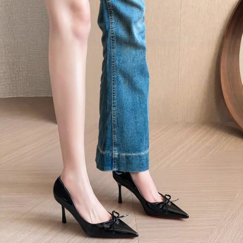 新款 女2026年春季 韩版 时尚 气质鞋 漆皮细跟单鞋 子轻奢蝴蝶结高跟鞋