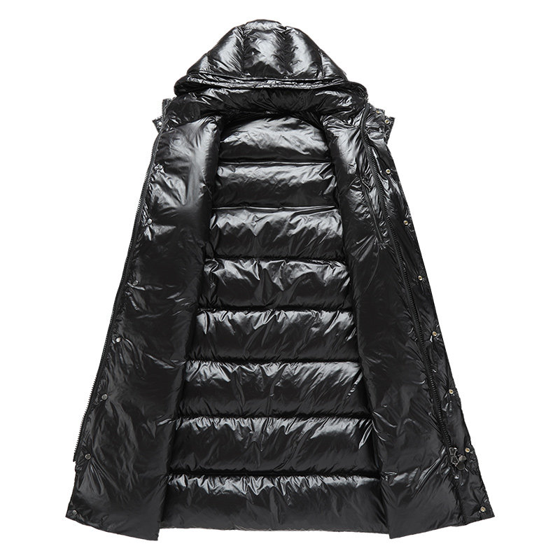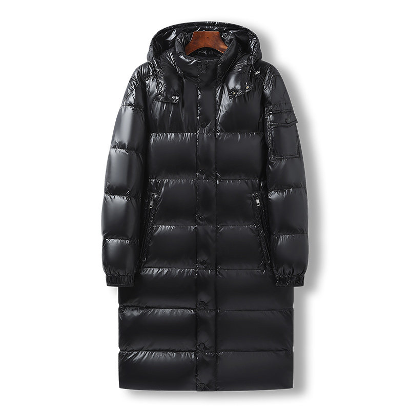加厚保暖长款 OVJF2025年新款 冬季 羽绒服男士 亮面户外连帽外套 爆款
