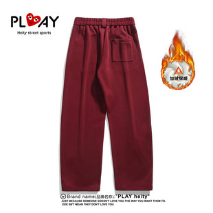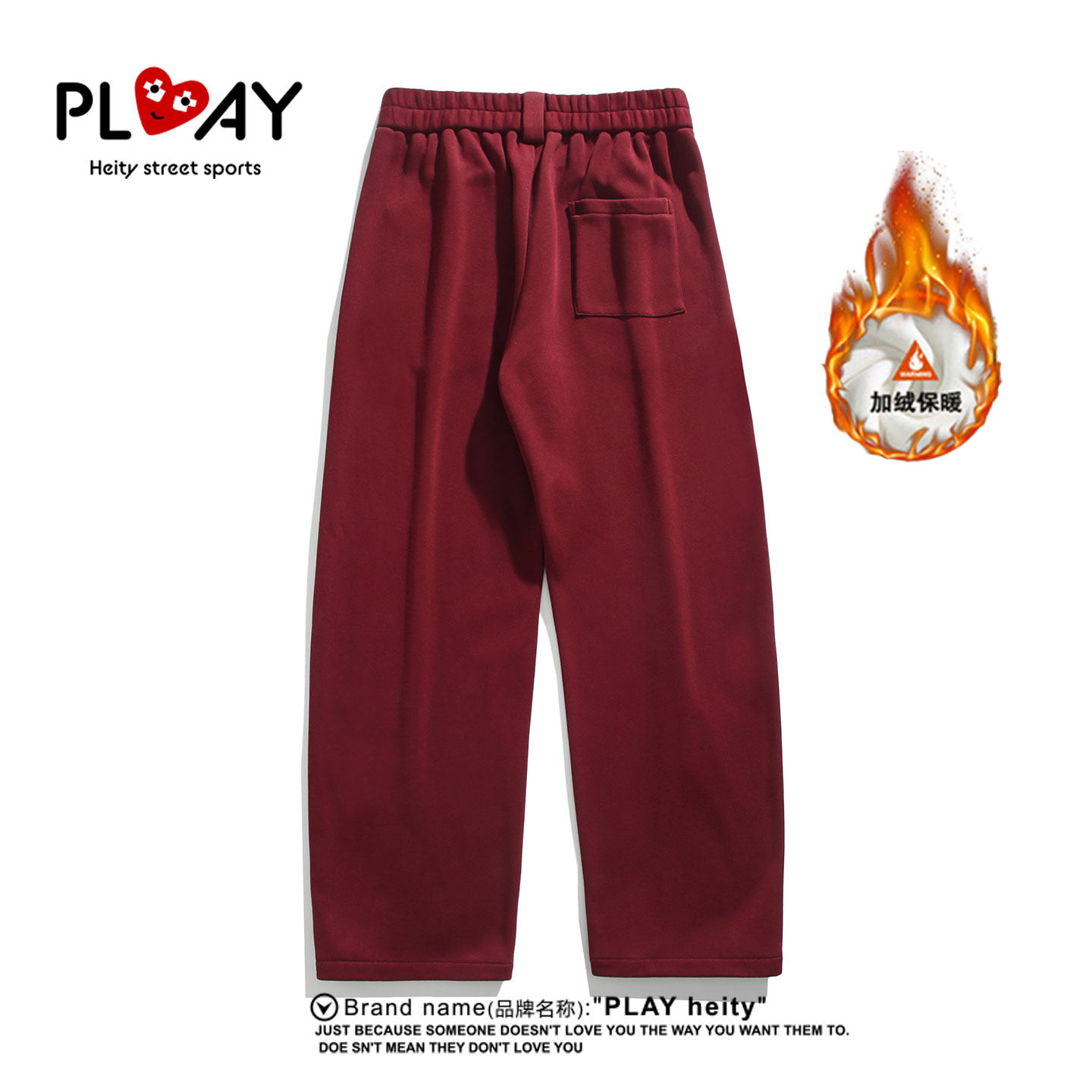 HEITY 裤 官方红色加绒保暖弯刀休闲裤 宽松潮流大码 子 男女款 PLAY