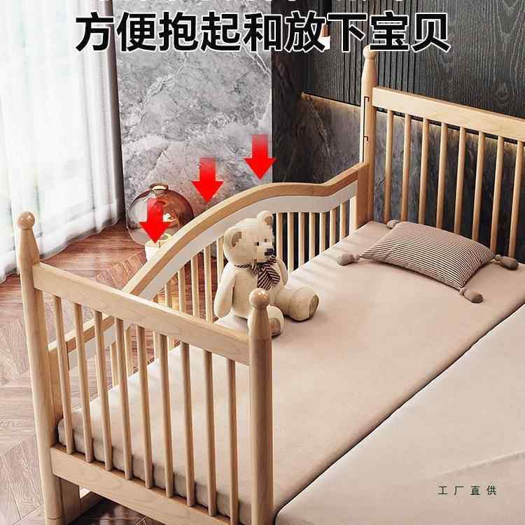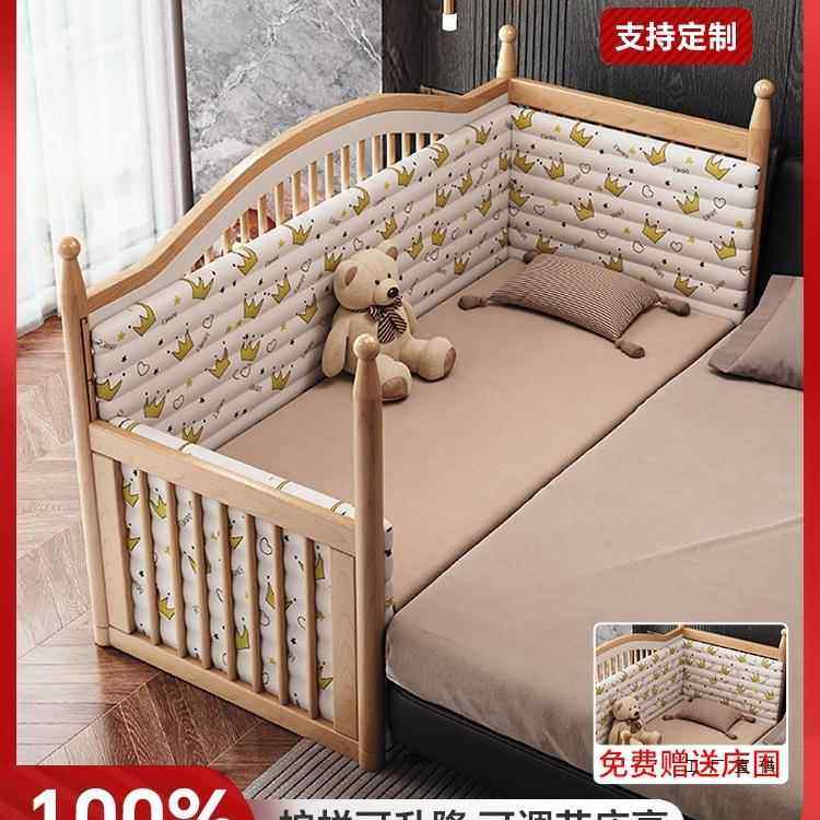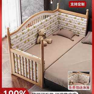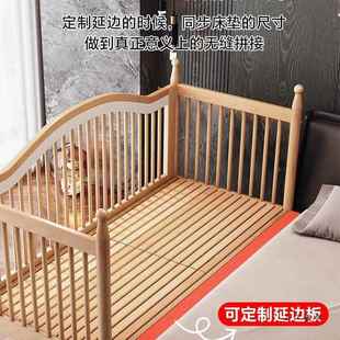 实婴TEO儿床带护栏高度木调节儿童床拼可接大床榉木床边加宽宝宝