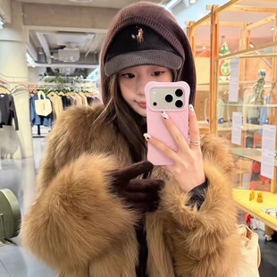 高级感毛毛皮草大衣 皮毛一体年轻款 气质复古狐狸毛短款 外套女冬季