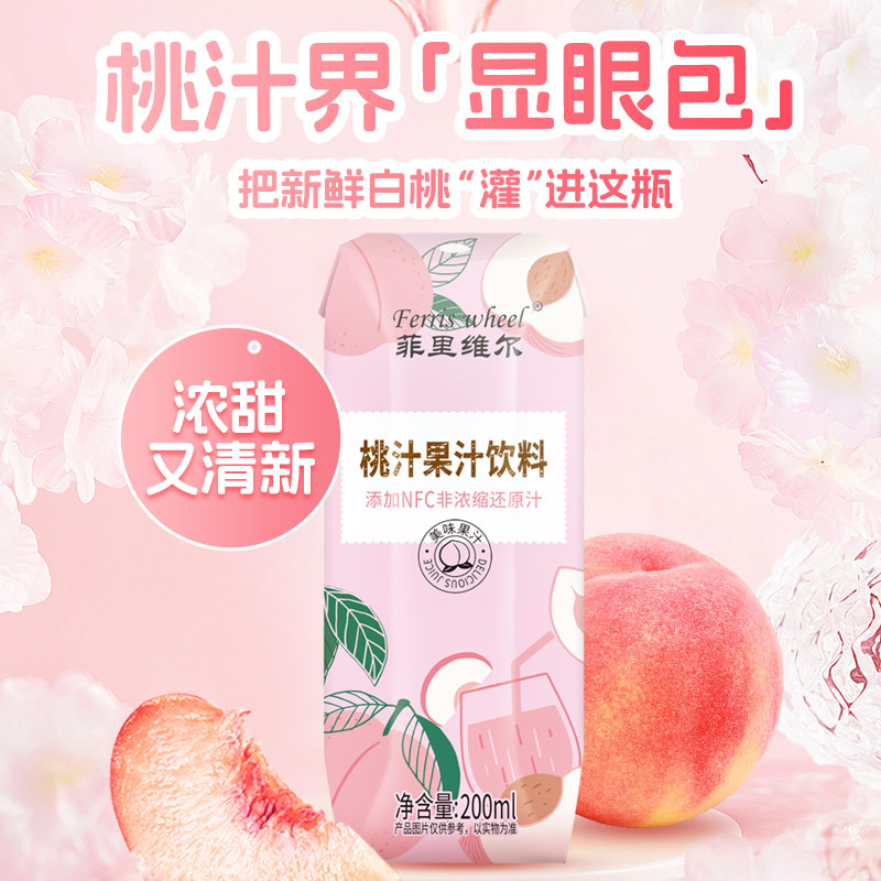菲里维尔桃汁桃子汁果汁饮料办公室休闲追剧饮品200ml 12瓶便携装