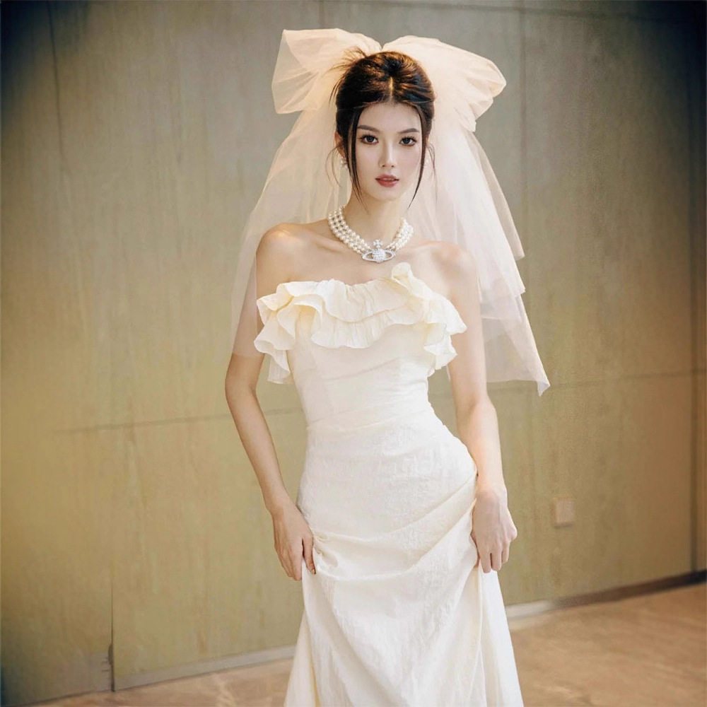 法式 轻婚纱气质珍珠晨袍迎宾出门纱订婚连衣裙鱼尾小众宴会晚礼服