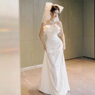 轻婚纱新娘2025新款 出门纱高端轻奢小众白色订婚晚礼服 高级感法式