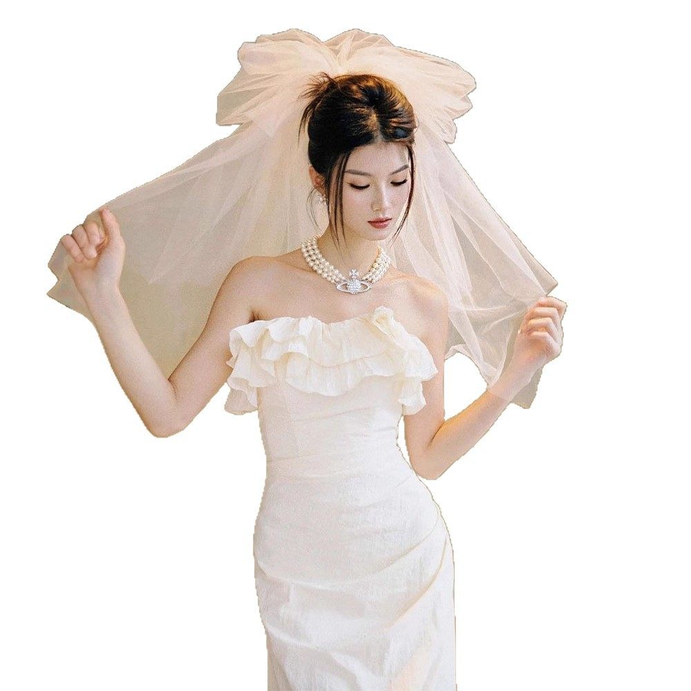 婚纱新娘2025新款 纱迎宾纱 抹胸小个子超仙出门纱简约花朵轻纱仪式