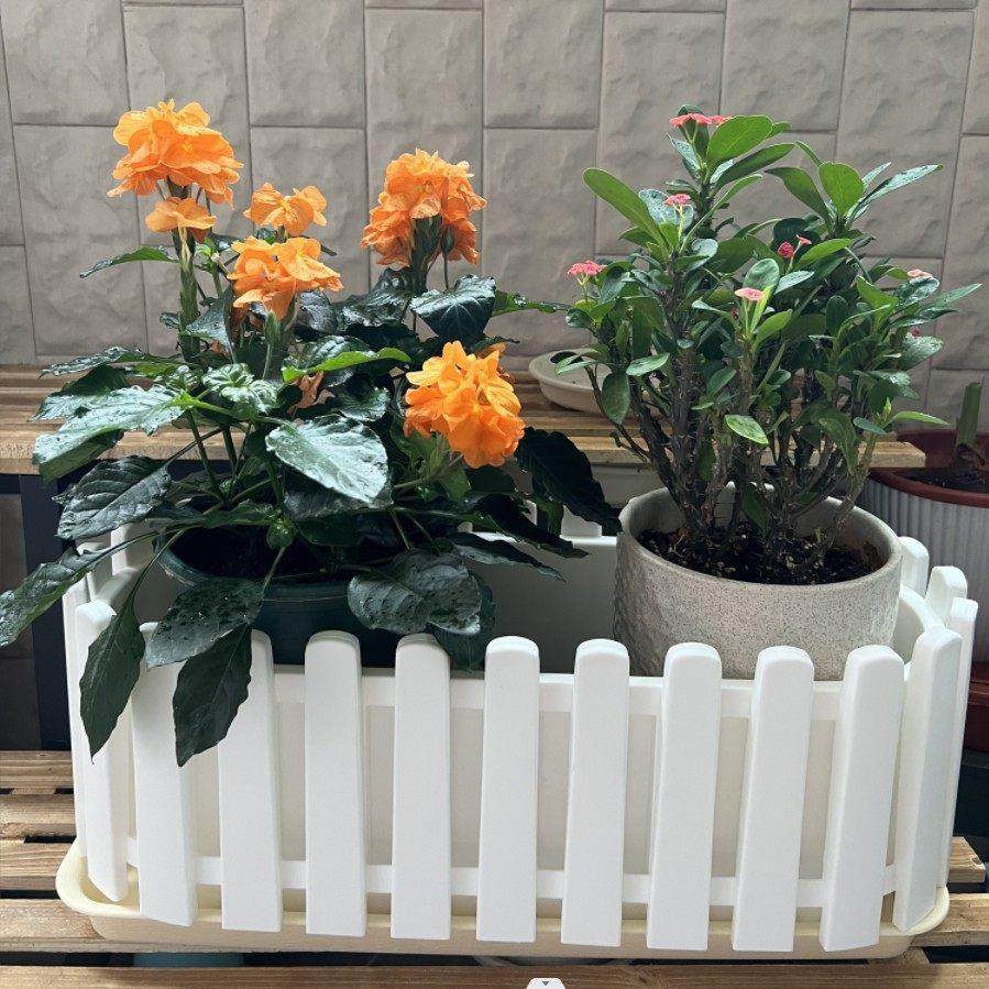 欧式 花盆PP树脂塑料椭圆形栅栏盆栽绿萝多肉盆 矮牵牛郁金香月季