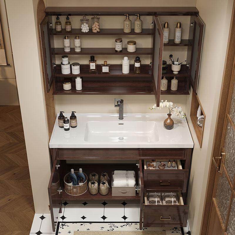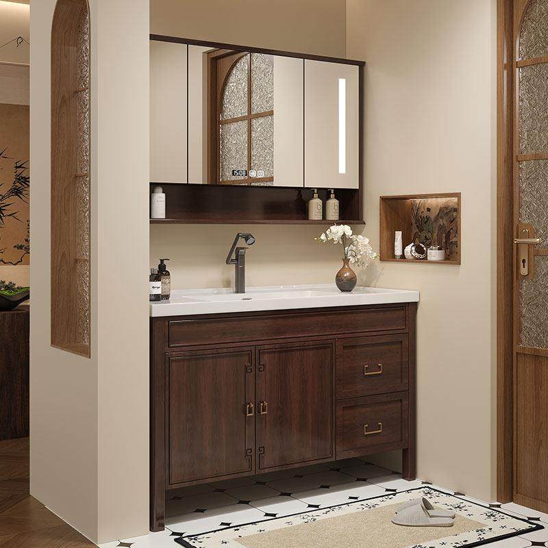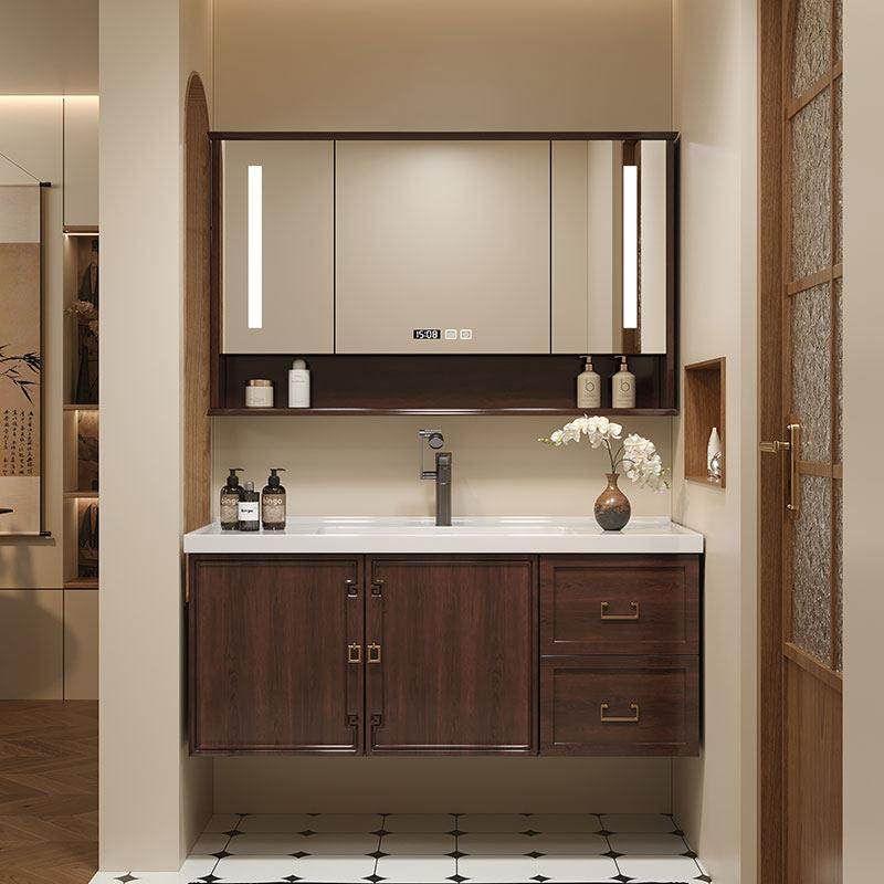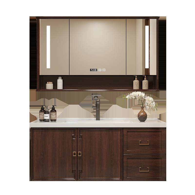 橡木简约现代智能浴室柜镜柜组合烤漆实木新中式 化妆室洗漱台陶瓷