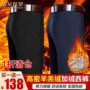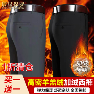 商务正装 休闲裤 男弹力修身 西裤 子男士 黑色加绒加厚款 直筒裤 男冬季