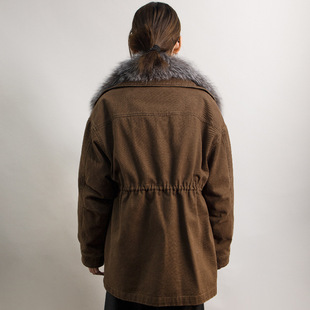 冬加厚工装 毛领羽绒服中长款 骆驼女装 派克服羽绒外套 小红书同款