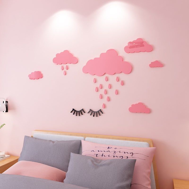 创意云朵公主儿童房卧室装 饰3d立体墙贴女孩房间床头墙面布置贴画