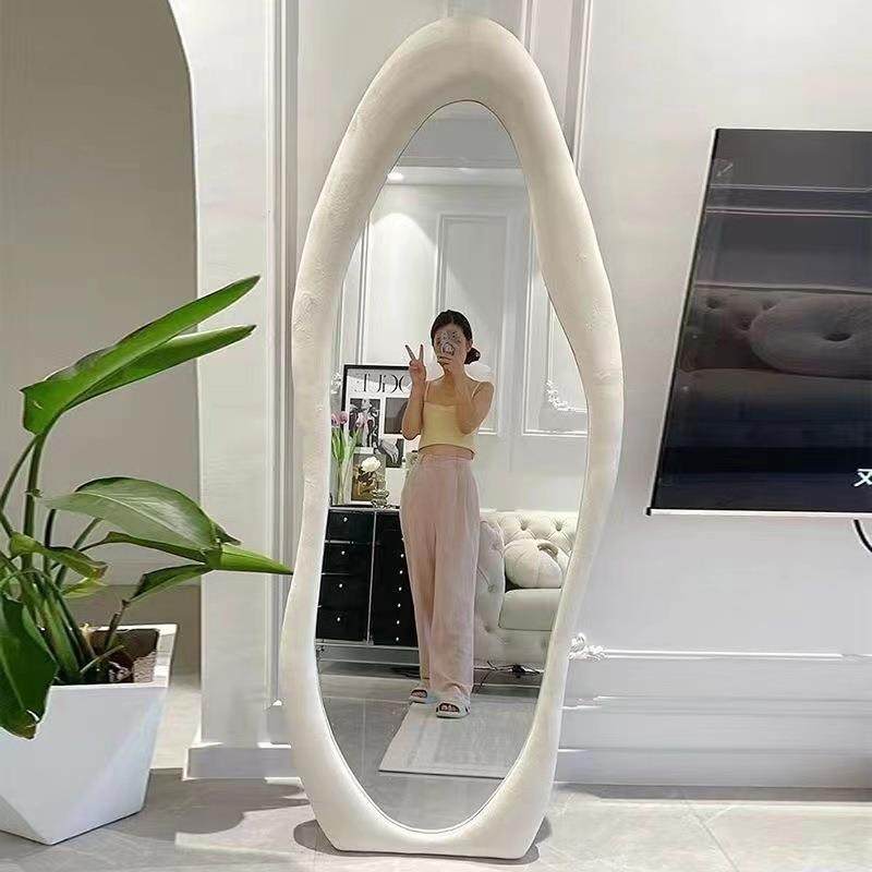 网红云朵形芒果地镜IRI奶油风全不身穿衣镜子家用异卧室规则试衣
