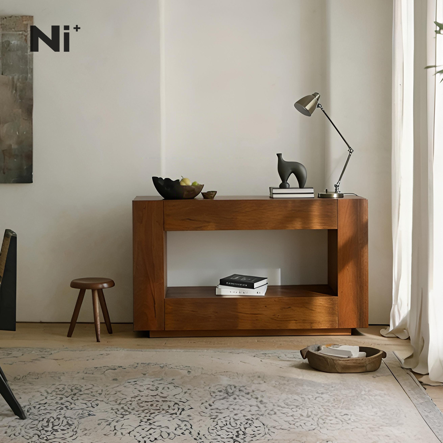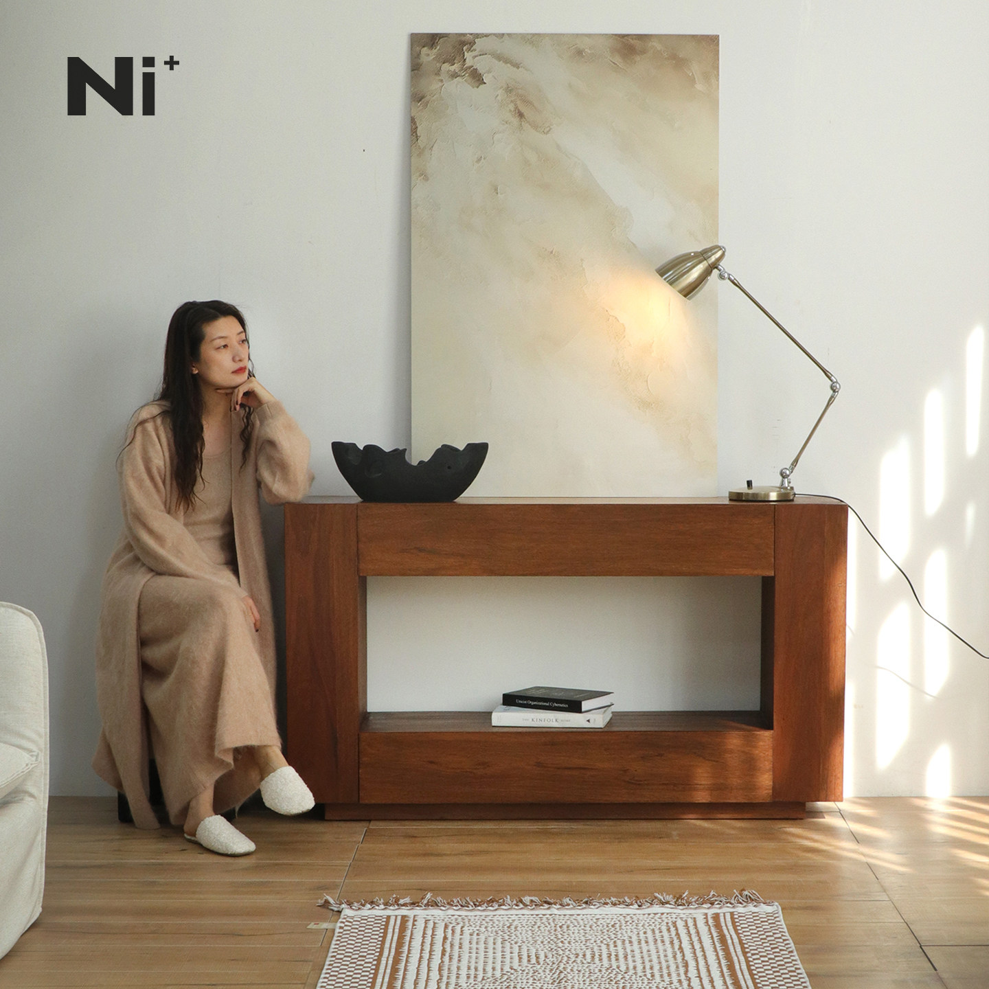 Ni尼家中古风实木玄关柜侘寂风边柜端景台客厅条案桌储物装 饰柜子