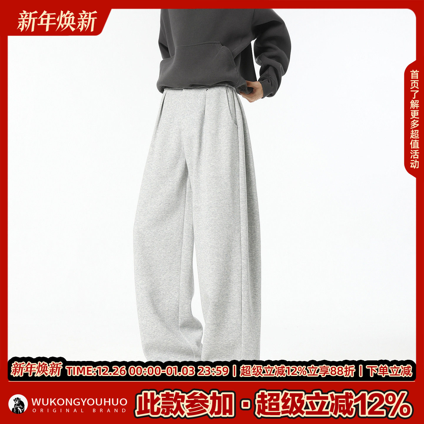 男复古宽松阔腿百搭休闲裤 悟空有货潮牌美式 纯色重磅垂感运动卫裤