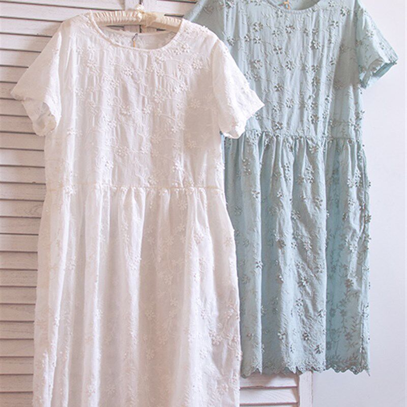 立体花刺绣文艺宽松连衣裙子纯棉仙女甜美中长款 2020韩国夏装 新款