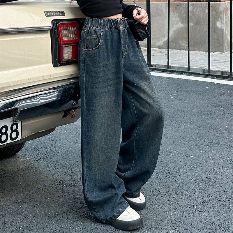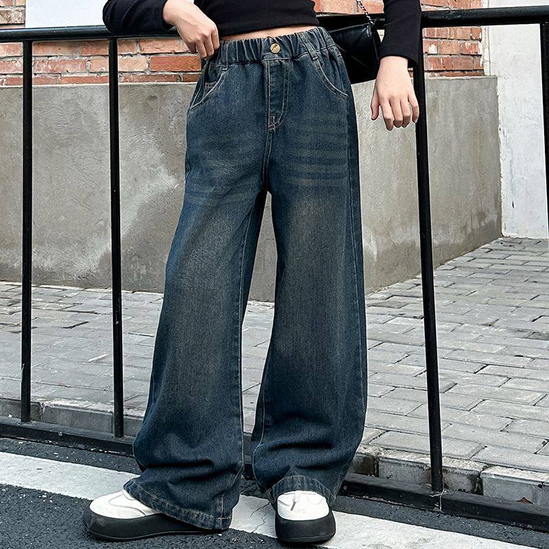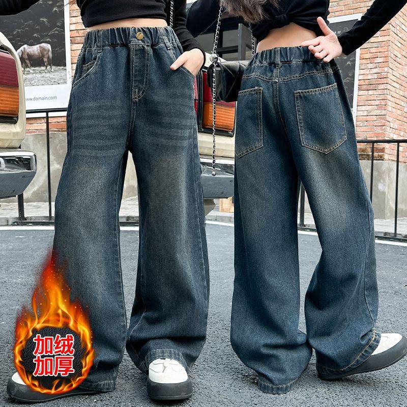 加绒宽松直筒阔腿裤 女童春秋牛仔裤 洋气冬装 中大儿童韩版 2025新款