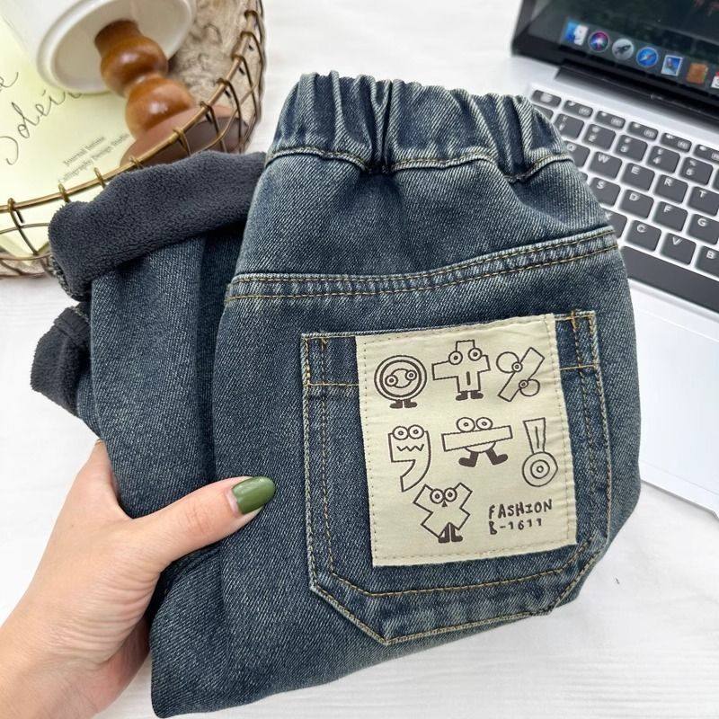 子学生冬裤 儿童男装 一体绒加绒保暖裤 男童牛仔裤 厚绒弹力 2025新款