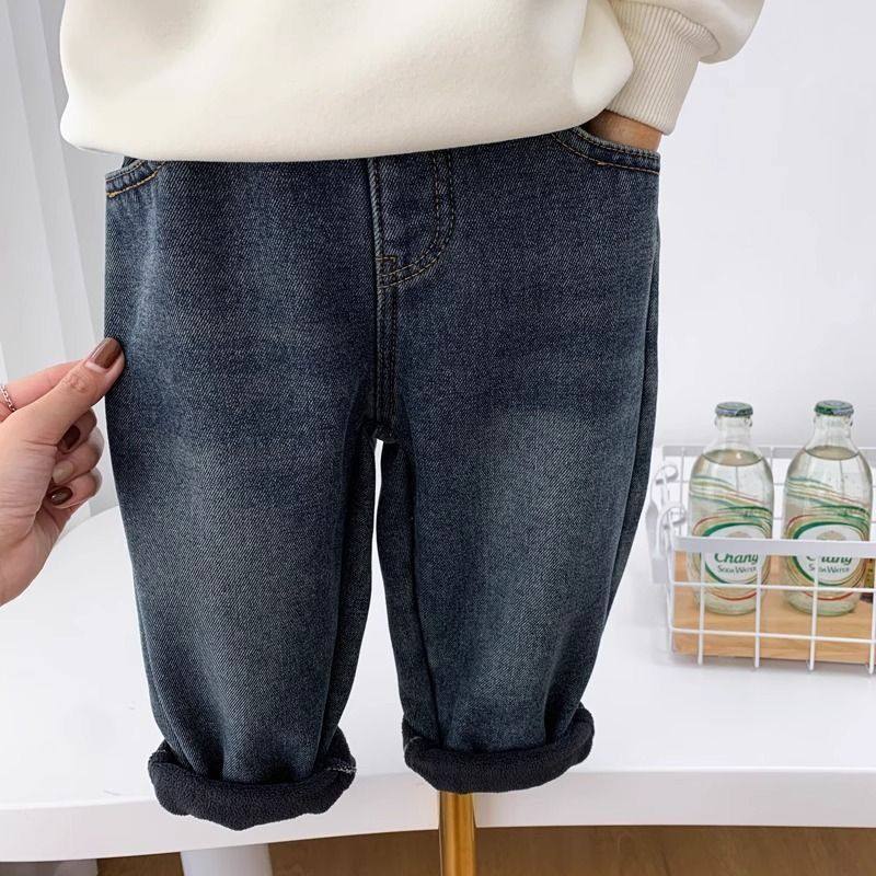 新款 2025冬季 童装 儿童直筒裤 女童裤 宝宝加绒加厚长裤 子男童牛仔裤