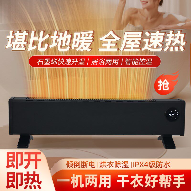 踢脚线取暖器家用节能省电石墨烯电暖器全屋大面积速热防水暖风机