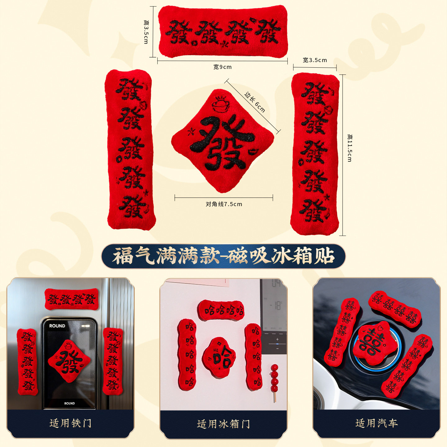 马年磁吸迷你对联冰箱贴2026毛绒福字春联门贴过年新年装 饰品