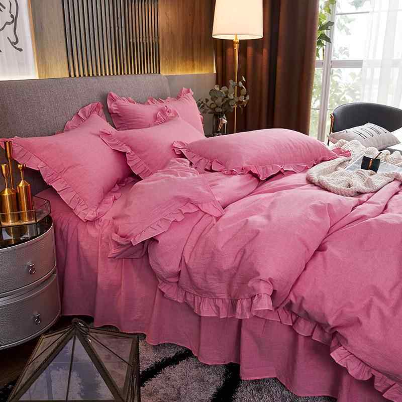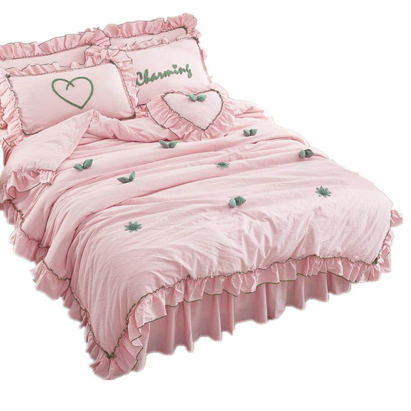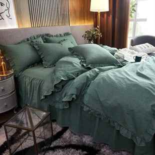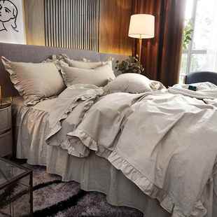 高档韩国纯四床件套裙公主风格 立体蕾丝被套床水洗纯棉棉灰色床上
