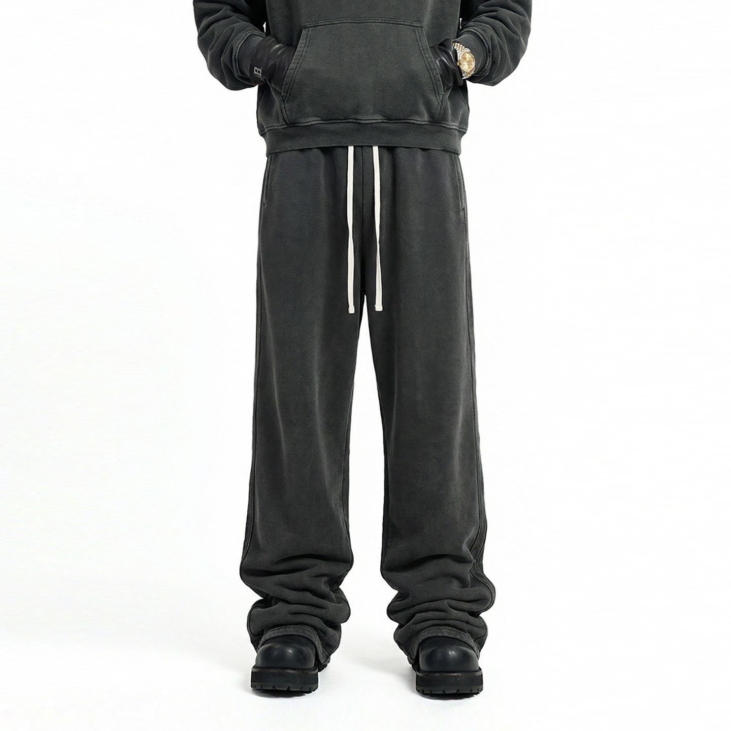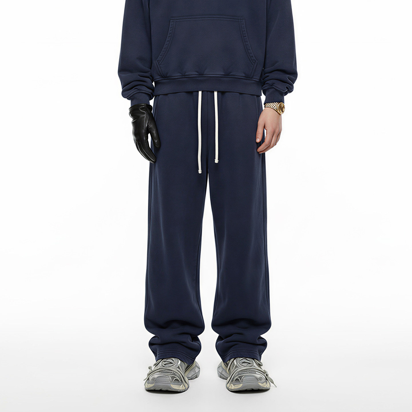 男百搭直筒垂感长裤 潮牌洗水复古宽松阔腿休闲裤 秋冬加绒保暖卫裤