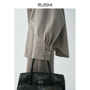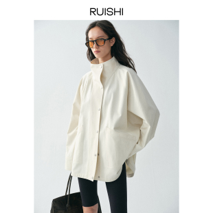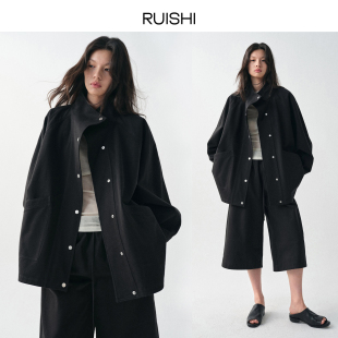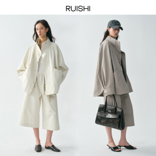 阔形风衣外套七分裤 100棉立领蝙蝠袖 女春 都市漫行 RUISHI芮时