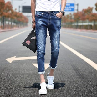 小脚夏天牛仔裤 男七分裤 修身 韩版 夏季 潮流九分八分潮9分7男裤 短裤