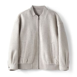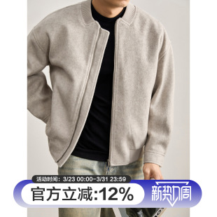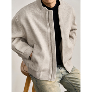 LUUD 型绵羊毛混纺磨毛肌理毛呢外套棒球领老钱复古夹克男 短宽版