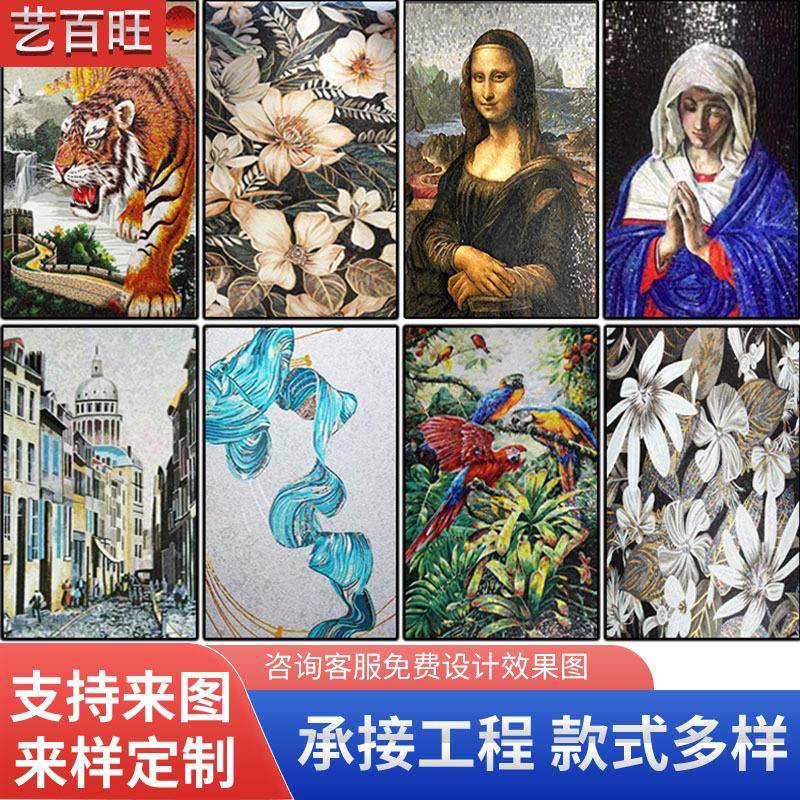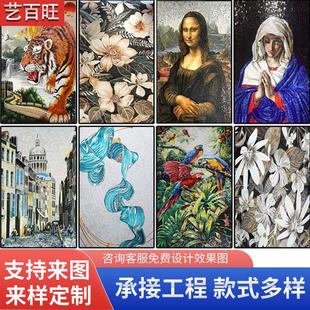艺术水晶玻璃马赛克装 饰画动物风景背景墙手工石材拼图玄关壁画
