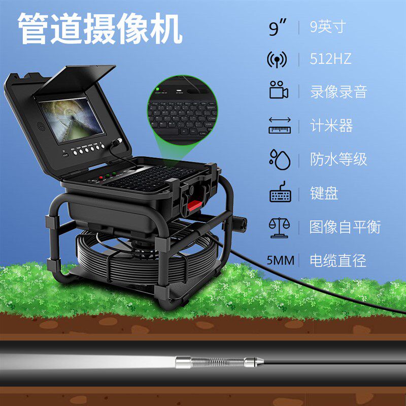 9寸工业管道内窥镜摄像机计米器512HZ定位测堵仪排水电力下水道