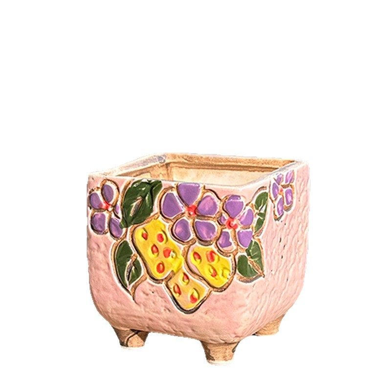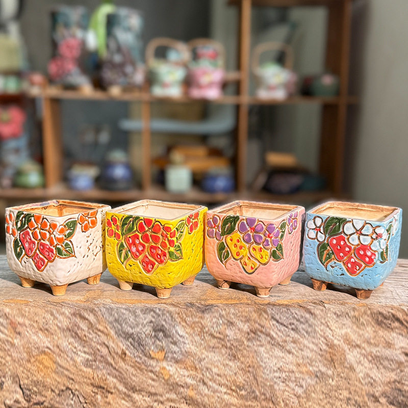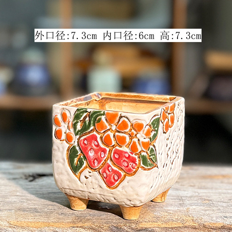 韩式 清仓透气粗陶创意植物盆栽肉肉小拇指盆 手绘多肉花盆陶瓷特价