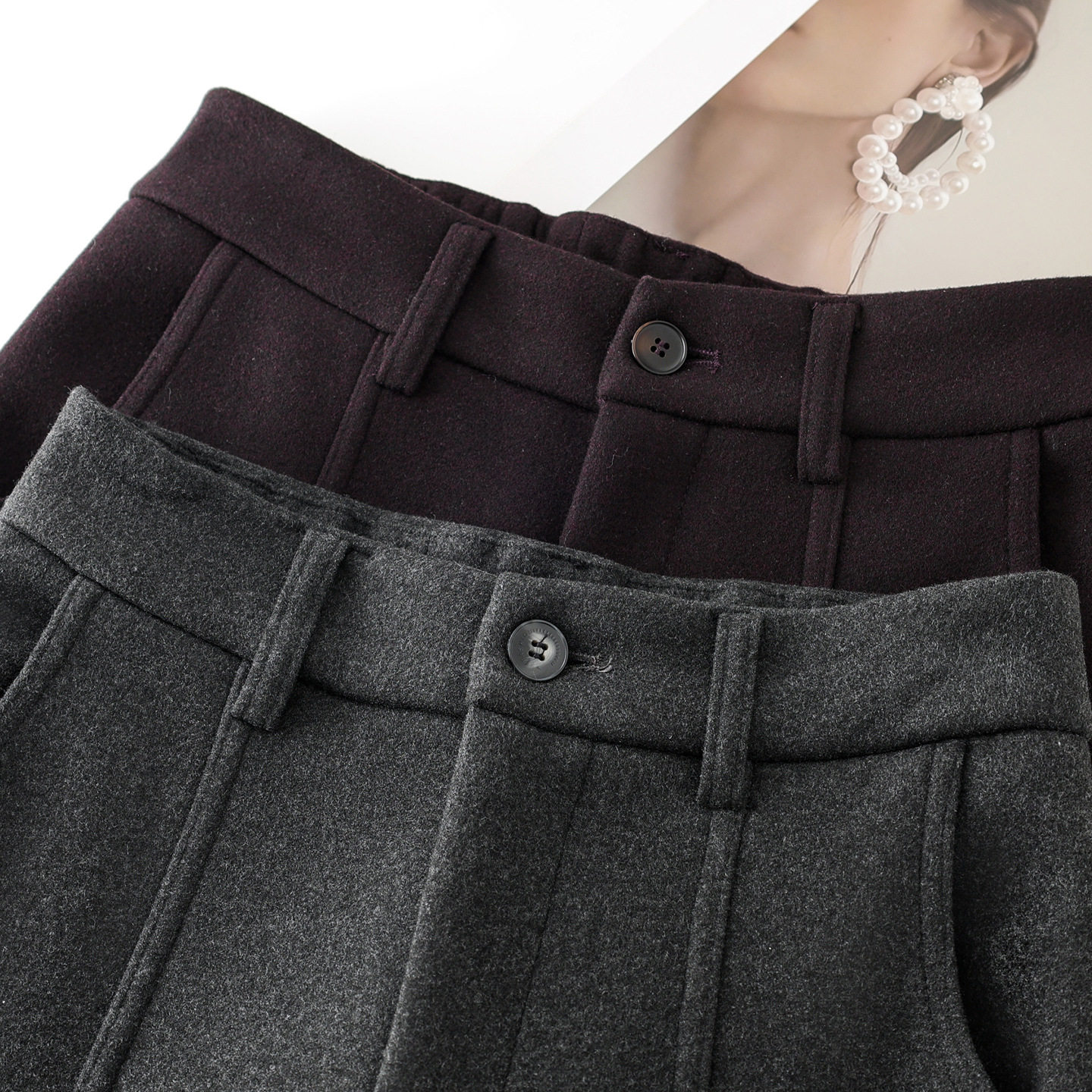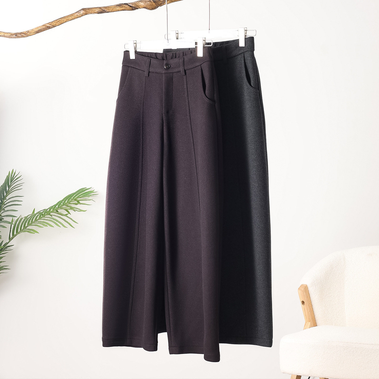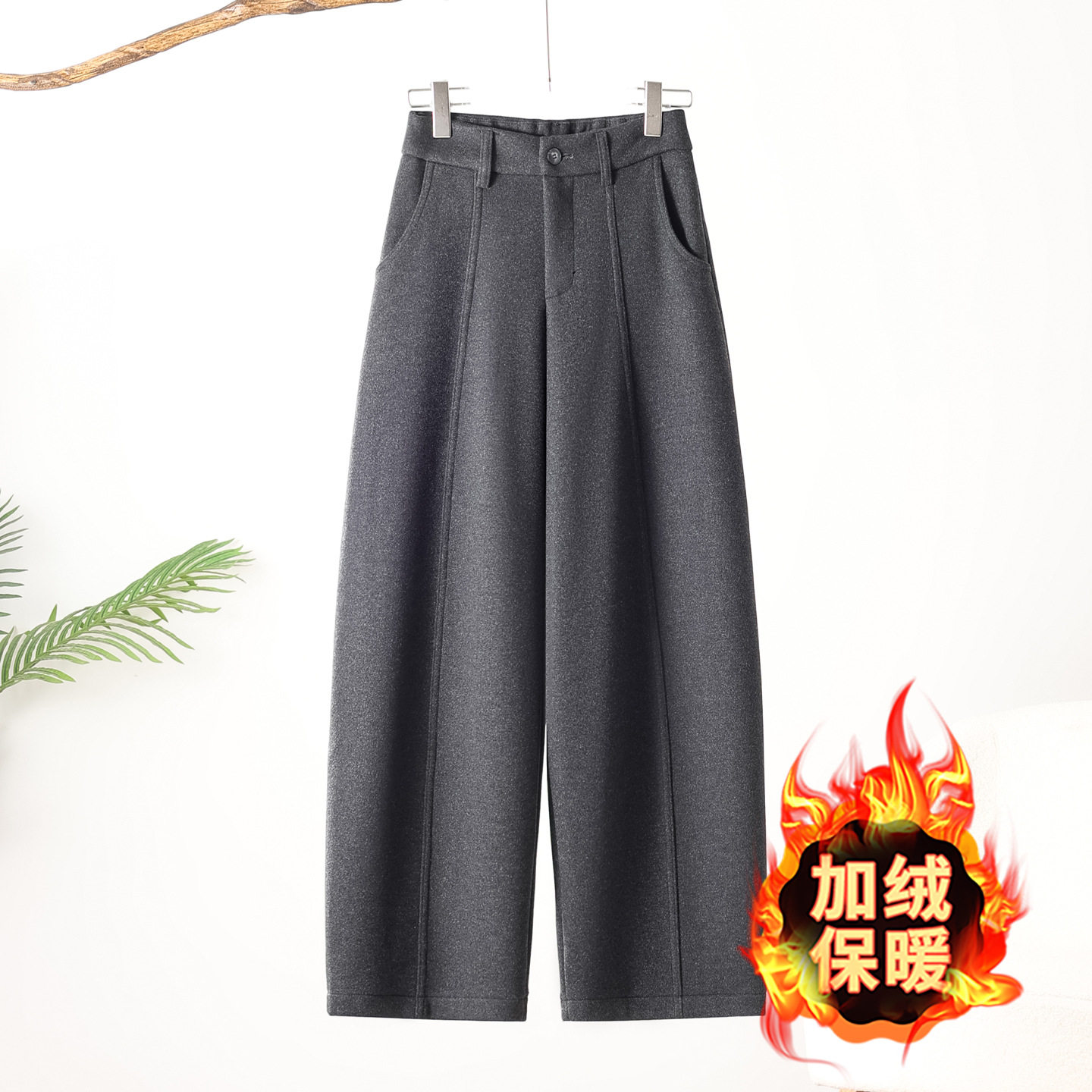 休闲裤 黑灰色毛呢弯刀裤 百搭阔腿哈伦裤 高腰加绒糯米裤 子女冬季